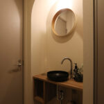 周辺環境を生かし塀越しに空と神社の大木が望めるプライベートテラスを設け、